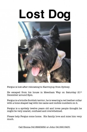 $$$$$$ REWARD - $500 for the safe return of Fergus the Dog.