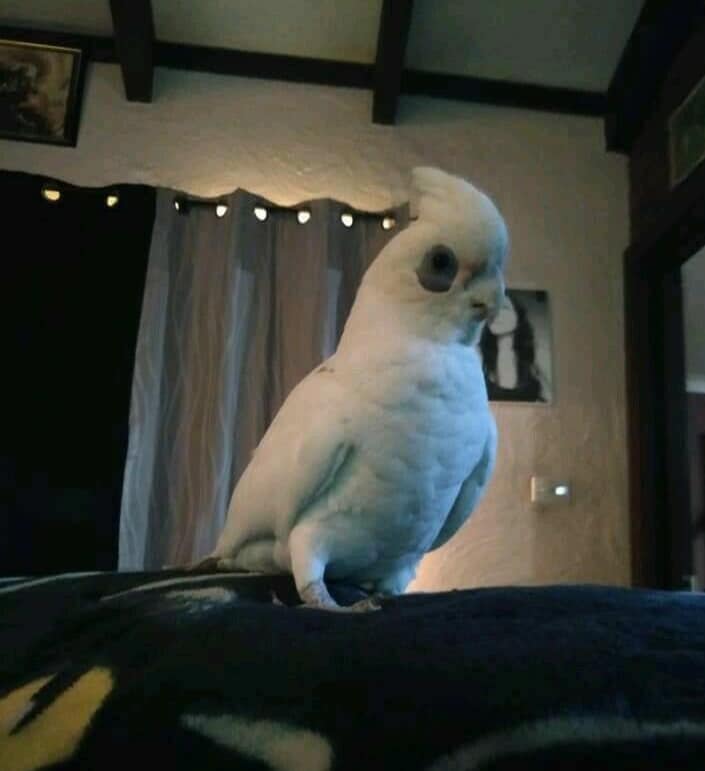 His name is Taters, he is very Tame. He says hello, cuddles, quit it.
